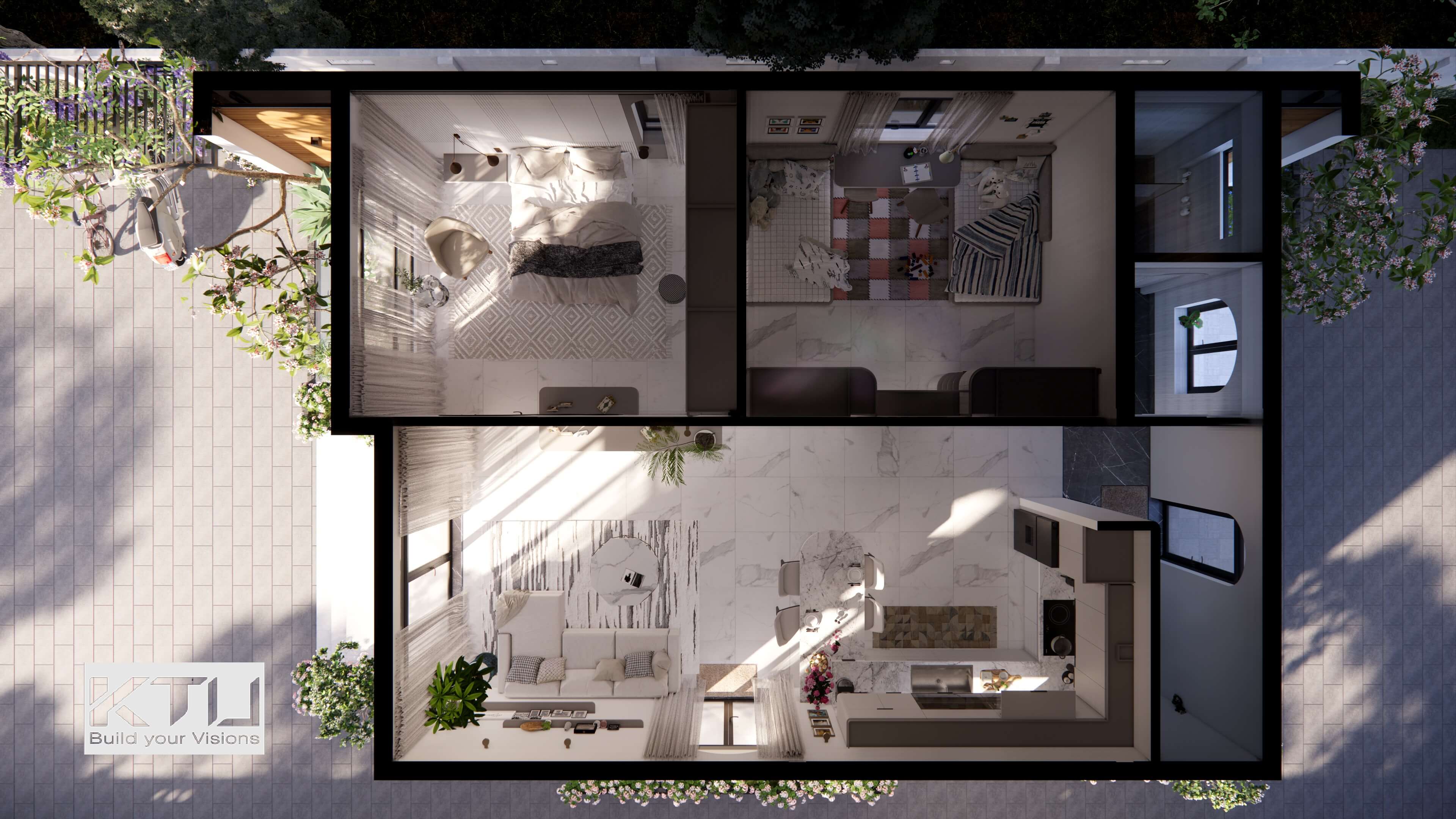 NHÀ ĐỒI RÌU Danh mục: Thiết kế Phong cách: HIỆN ĐẠI Phương hướng: ĐÔNG NAM Thời gian: 2025 Đáp ứng nhu cầu sống hiện đại của cặp vợ chồng trẻ, dự án NHÀ ĐỒI RÌU gây ấn tượng với không gian sân vườn rộng rãi, mang hơi thở của thiên nhiên nhưng không kém phần ấm cúng, giản dị. Các khu vực như phòng khách, bếp và phòng ăn được thiết kế mở và liên kết với nhau tạo sự liền mạch, ánh sáng được phân bổ hợp lý, tận dụng tối đa ánh sáng tự nhiên và không gian xanh, giúp các thành viên trong gia đình dễ dàng tương tác và tận hưởng những khoảnh khắc bên nhau. Xem thêm